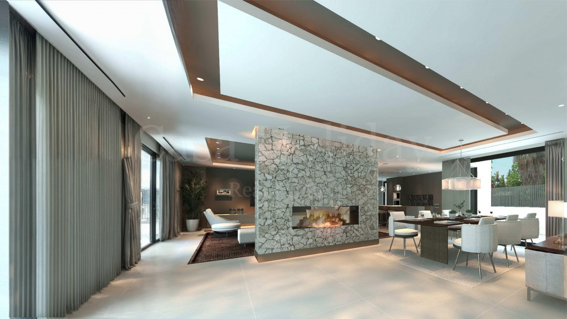 This magnificent property, located in one of Marbella’s most exclusive residential areas, offers a contemporary and functional design, ideal both as a permanent residence or a holiday home. It is conveniently situated close to golf courses, the beach, international schools, supermarkets, and other essential amenities. Spread over two floors, the villa will feature four bedrooms with en suite bathrooms and a guest toilet on the main floor. The main floor includes three bedrooms with en suite bathrooms, a spacious living room, a guest toilet, and a kitchen with direct access to the garden and the private heated saltwater pool, perfect for enjoying the Mediterranean climate all year round. The upper floor houses the master bedroom, which includes a private terrace and a private lounge with a fireplace, providing a perfect space for relaxation and privacy. The property also includes a private garden, the heated saltwater pool, and an exterior garage with space for three cars. Notable features include pre-installation for an elevator, underfloor heating throughout the house, and generous outdoor areas that ensure privacy and comfort. A unique opportunity to acquire a modern villa in an unbeatable location, with the possibility to customize some finishes during the construction process.