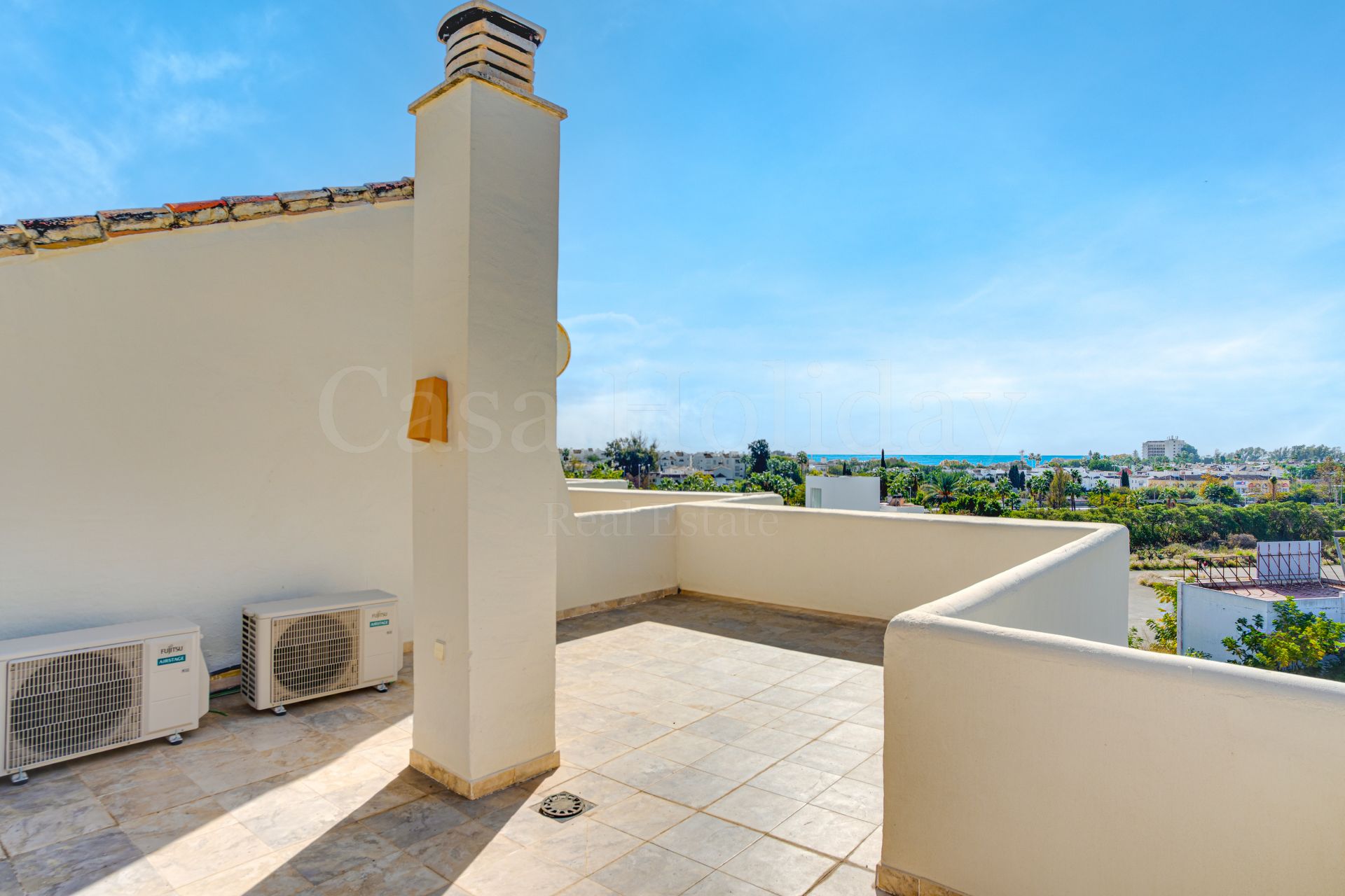 849.000€ 318-02090OL Elegant 3 bedroom townhouse with sea views in El Pirata – New Golden Mile, Estepona Located just a few steps from the beach, within the exclusive gated community of “El Pirata”, this impeccable 3 bedroom townhouse and 3.5...