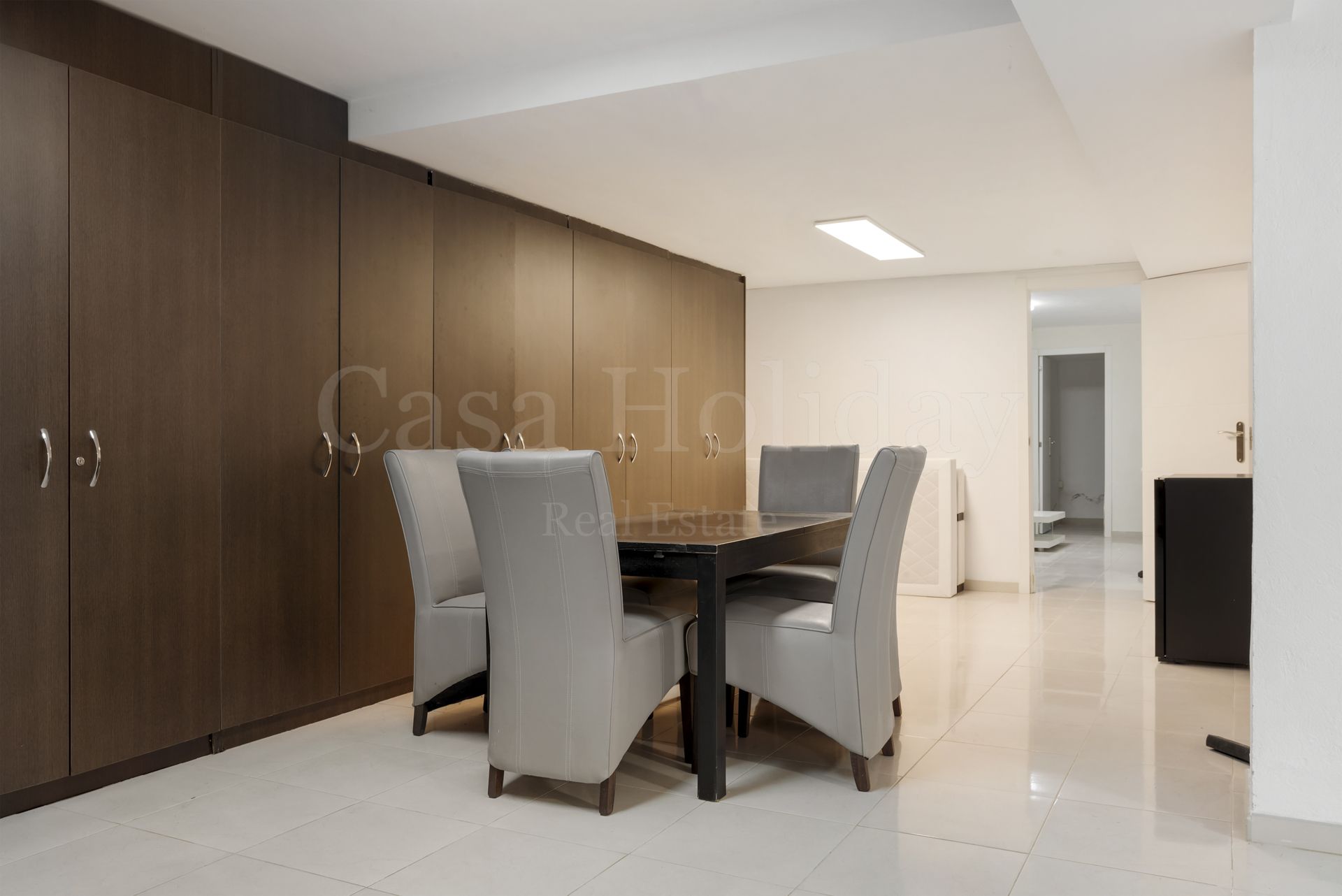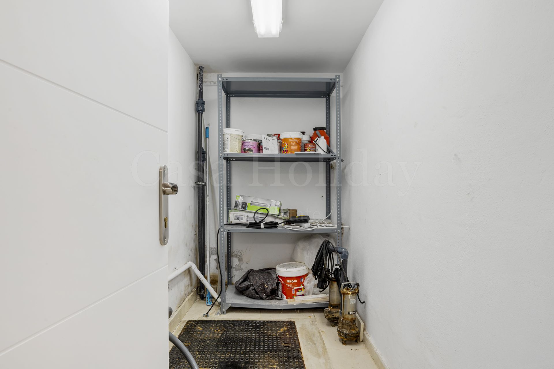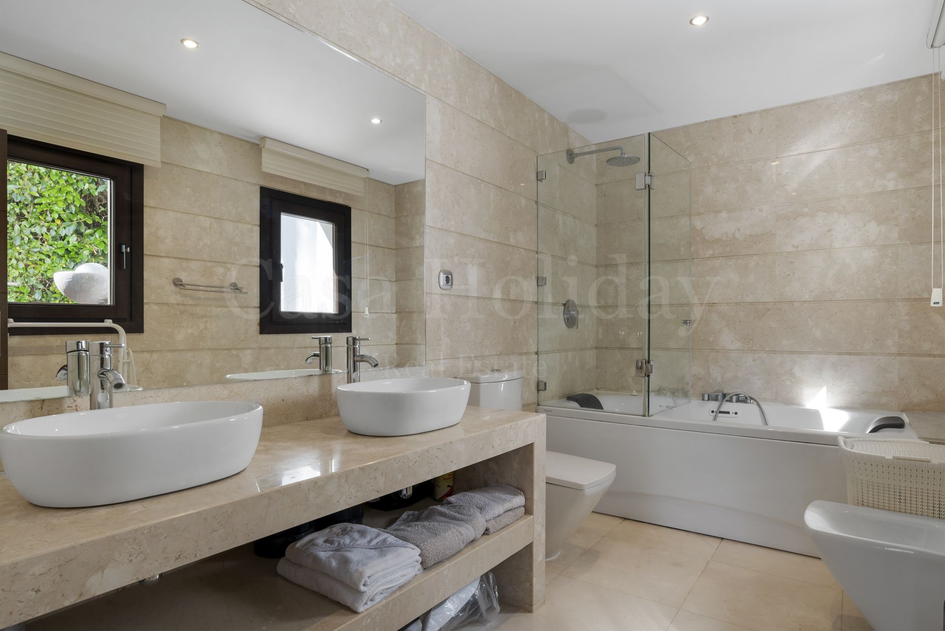 The villa itself is composed of an entrance hall, great large living room with dining area, part covered with a glass roof allowing alot of light to enter, fully fitted open plan modern kitchen including breakfast bar, four bedrooms, plus another bedroom in the basement, four bathrooms, a guest toilet, and a terrace o the master bedroom with access to a small rooftop terrace.