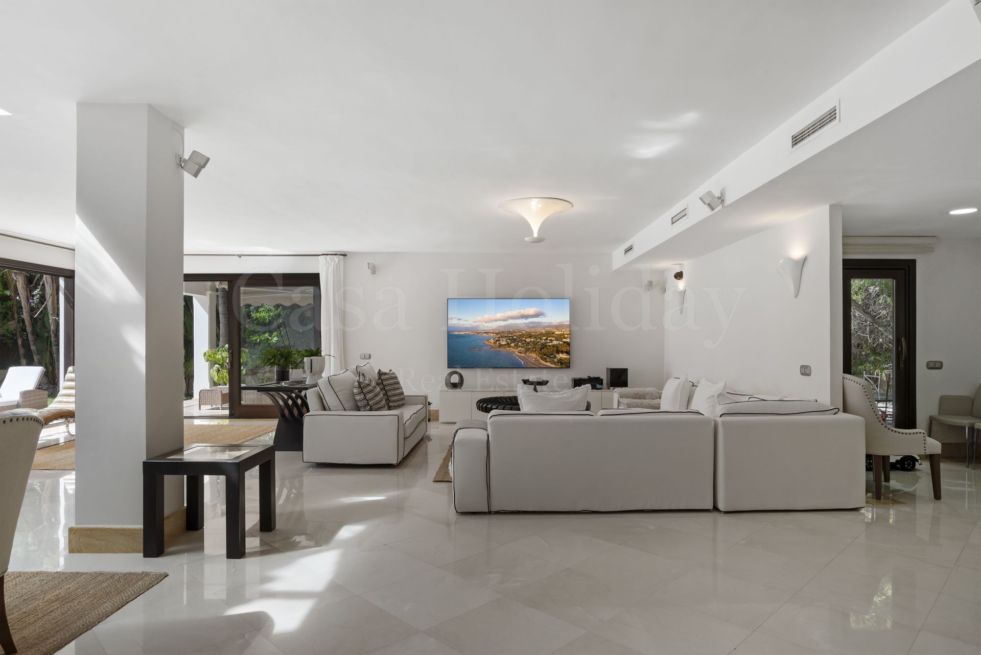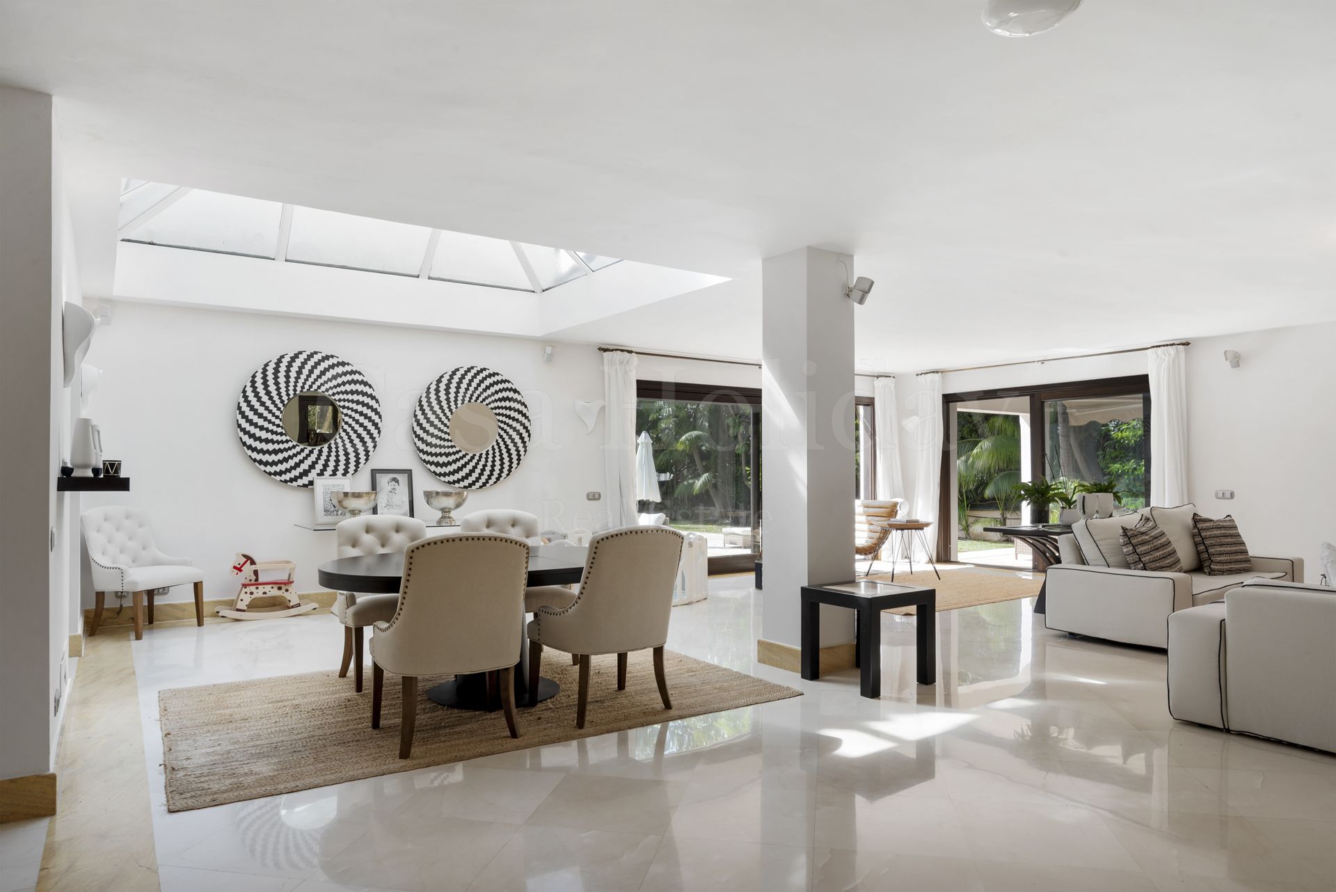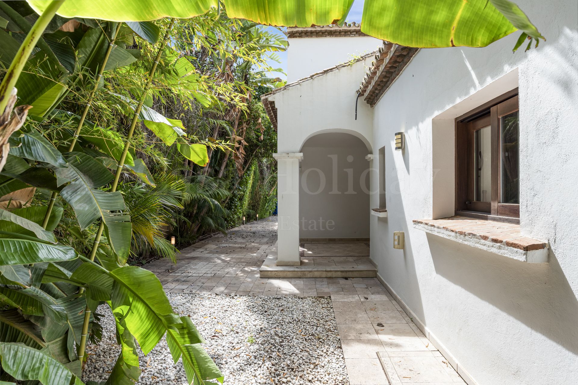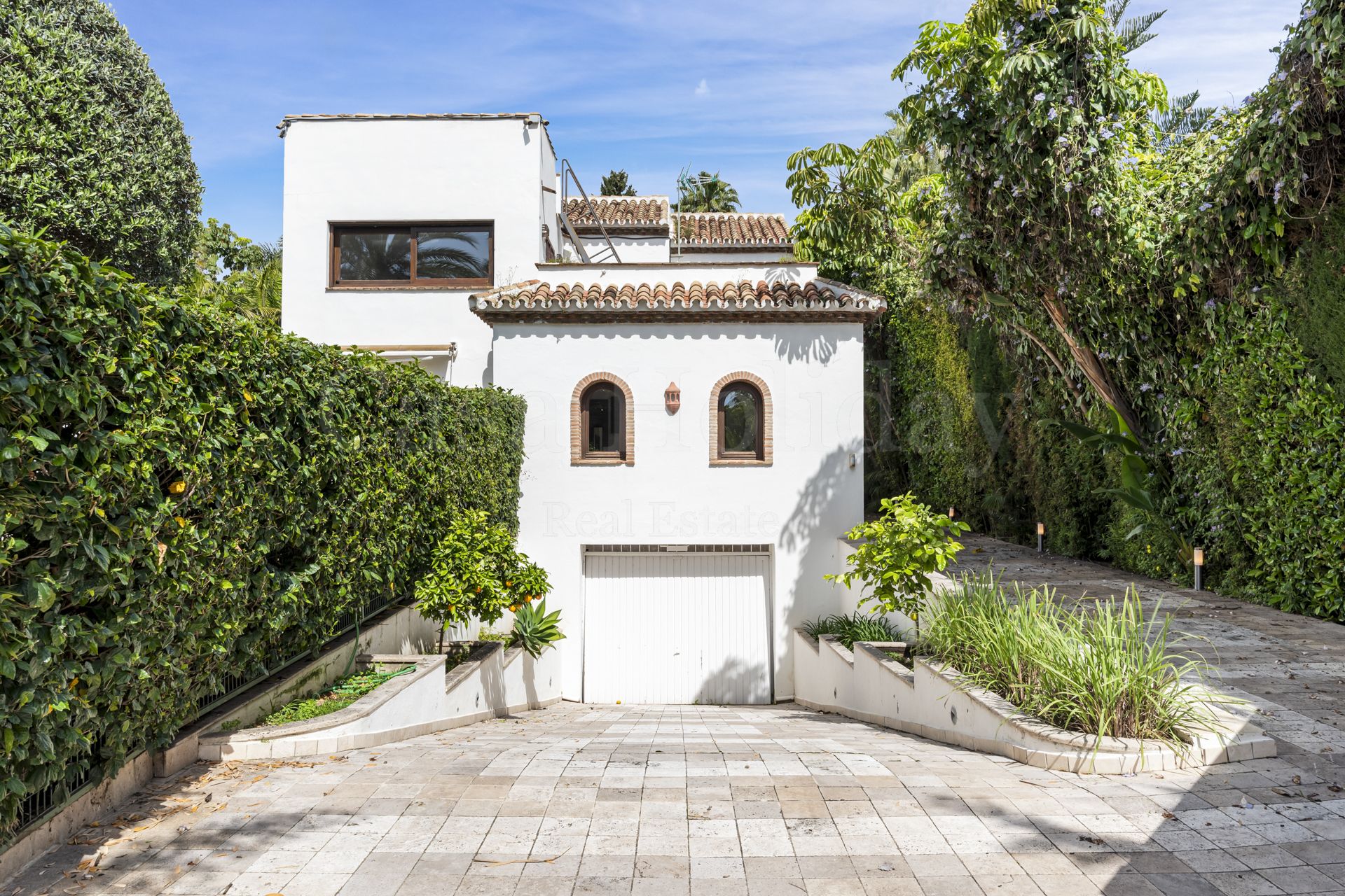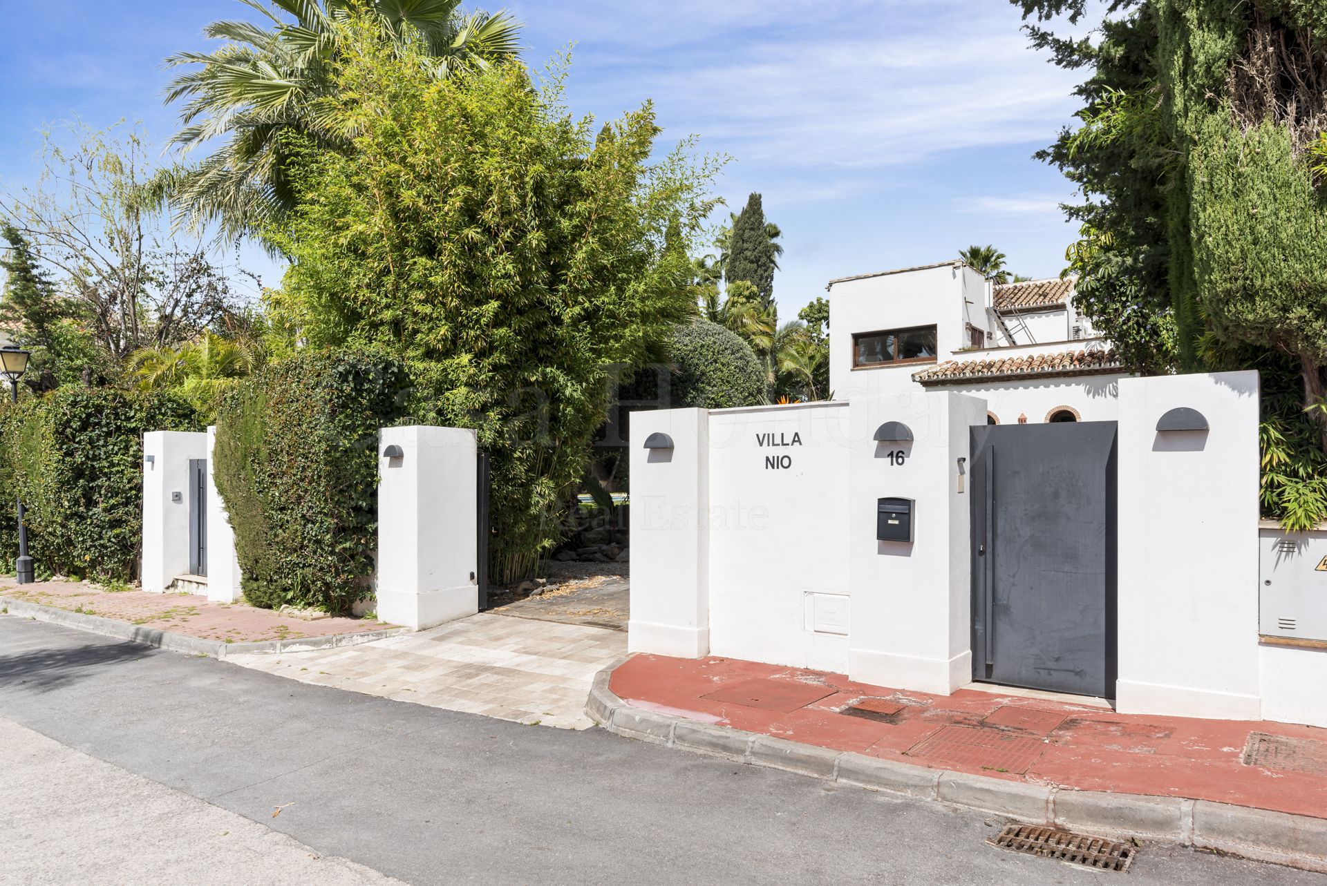 Welcome to this unique south facing villa, located second line from the golf course, within walking distance to Centro Plaza, Aloha Garden, Puerto Banus, a range of well known golf courses including Aloha and Las Brisas, bars, restaurants and supermarkets.