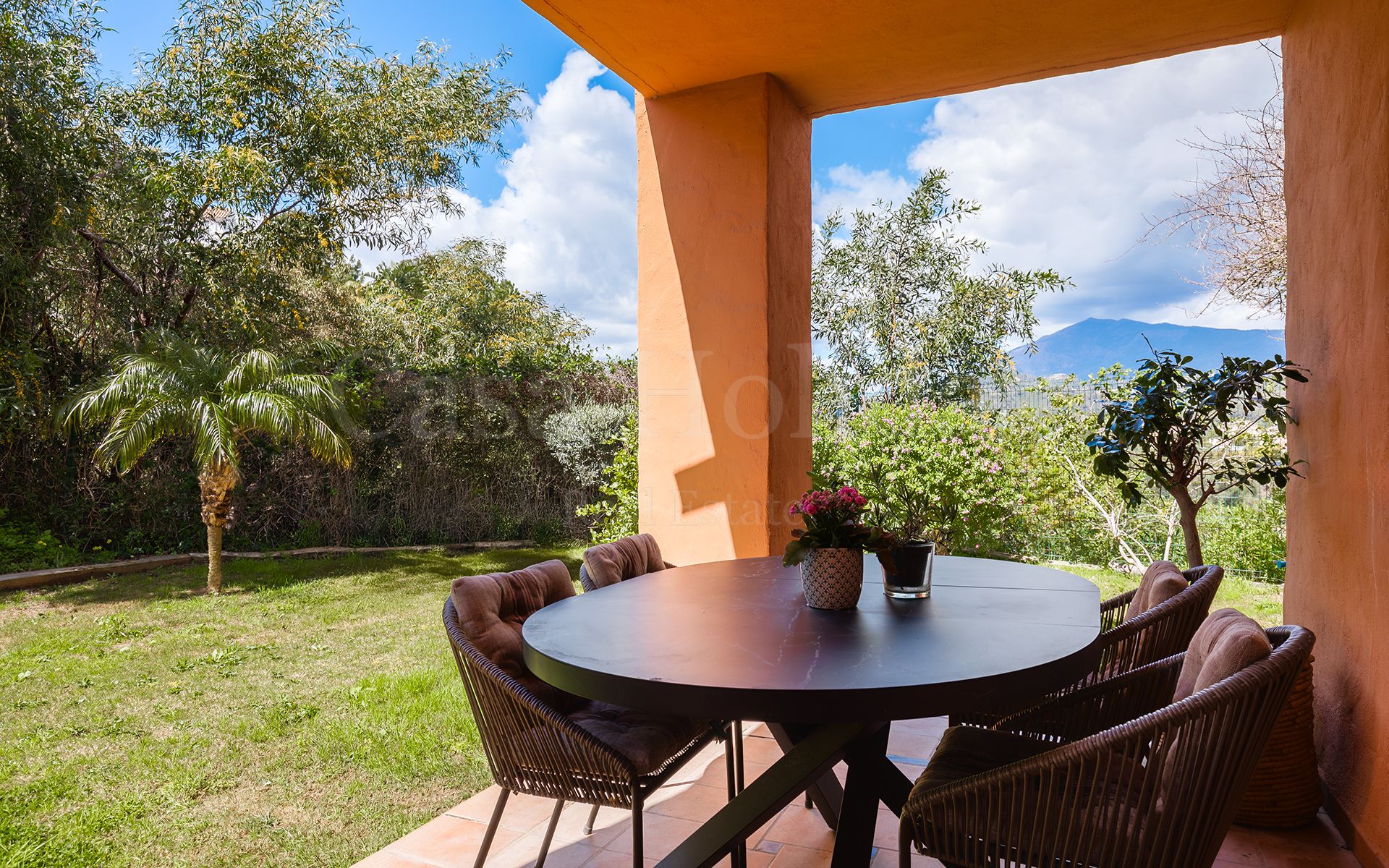 Apartamento totalmente renovado de 3 dormitorios con orientación suroeste en Gazules del Sol, un complejo totalmente cerrado y seguro a poca distancia de Atalaya International School, Benahavís.
