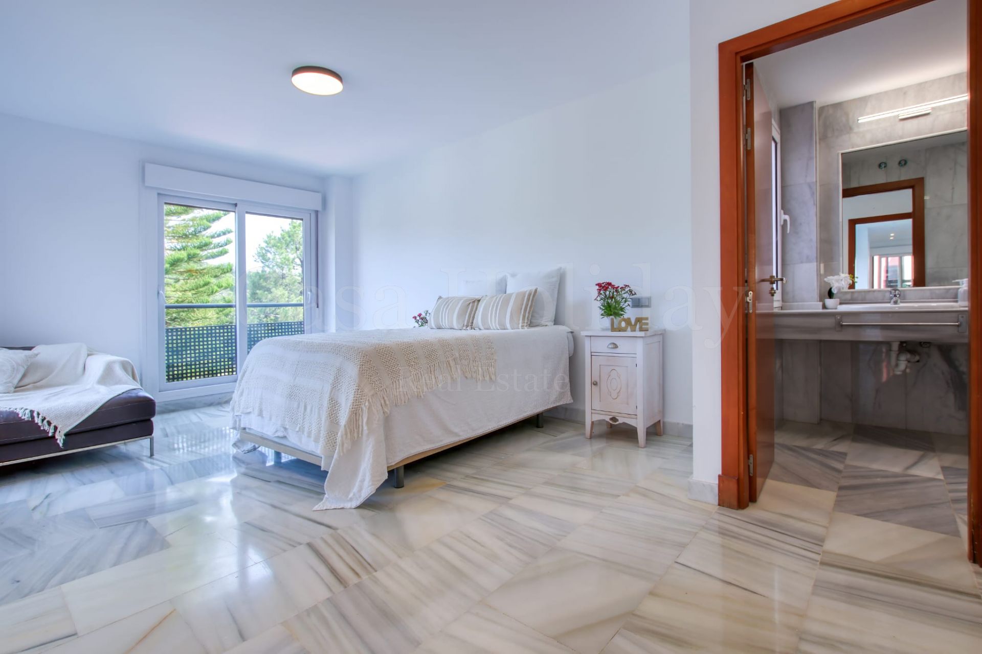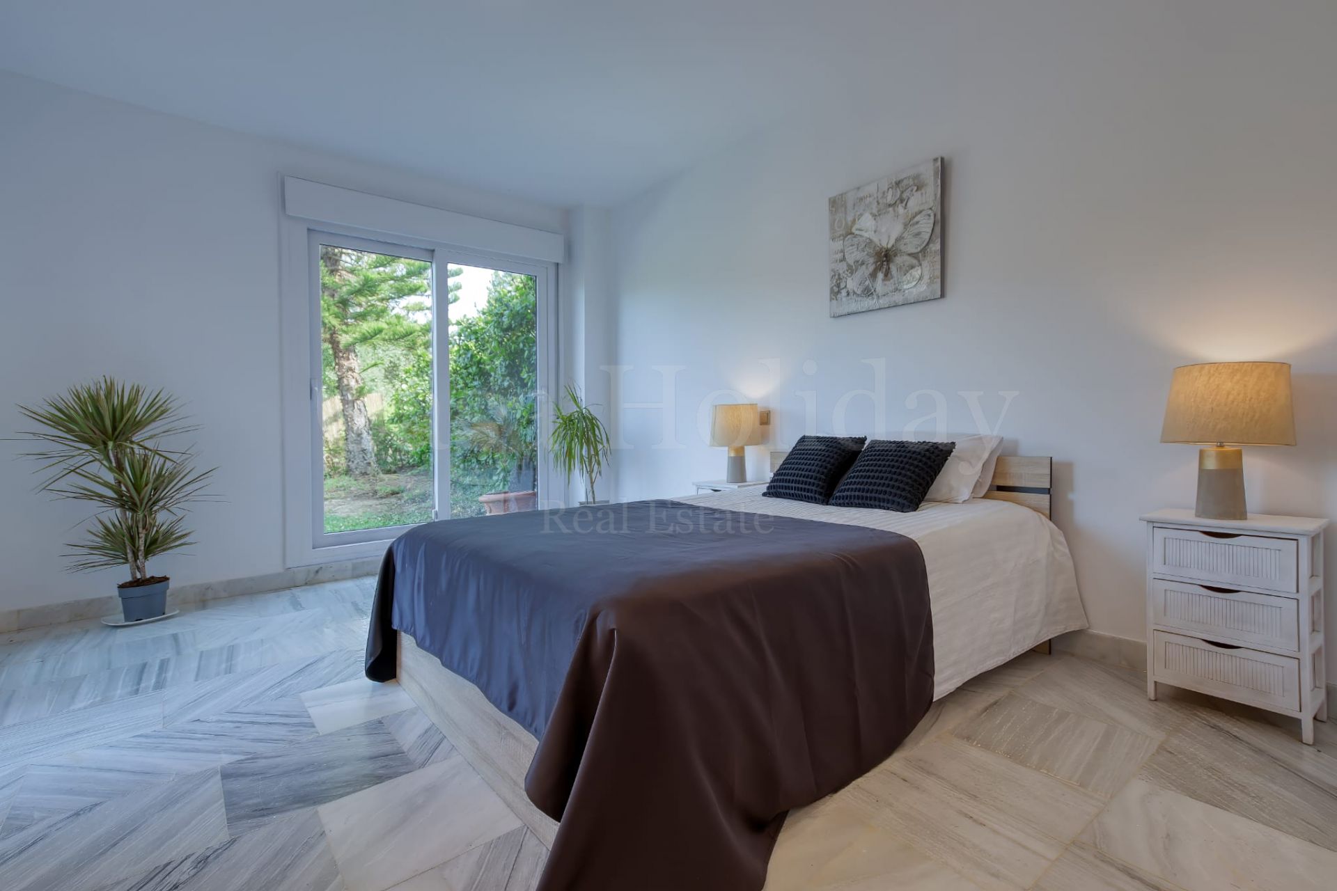 Fantástica oportunidad de adquirir una espaciosa villa de cuatro dormitorios situada en la codiciada comunidad cerrada del Parque Botánico en Las Lomas de Guadalmina, Benahavís. Esta exclusiva urbanización ofrece una amplia gama de comodidades, incluyendo gimnasio, spa, sauna, pistas de squash, pistas de tenis y paddle, así como una piscina climatizada olímpica. La propiedad combina privacidad, comodidad y una ubicación privilegiada rodeada de naturaleza. Con una orientación orientada al este, el hogar disfruta de agradable luz natural de la mañana en las principales zonas de estar. Cuenta con una gran sala de estar con chimenea y acceso directo a una terraza, que conduce al jardín privado y piscina; una cocina totalmente equipada; tres dormitorios bien distribuidos; tres baños, dos de los cuales están en suite; y dos aseos de invitados. En la planta baja, también hay un apartamento independiente, ideal para visitantes o familiares. Otras características incluyen armarios empotrados, un trastero y tres espacios privados de estacionamiento descubiertos.