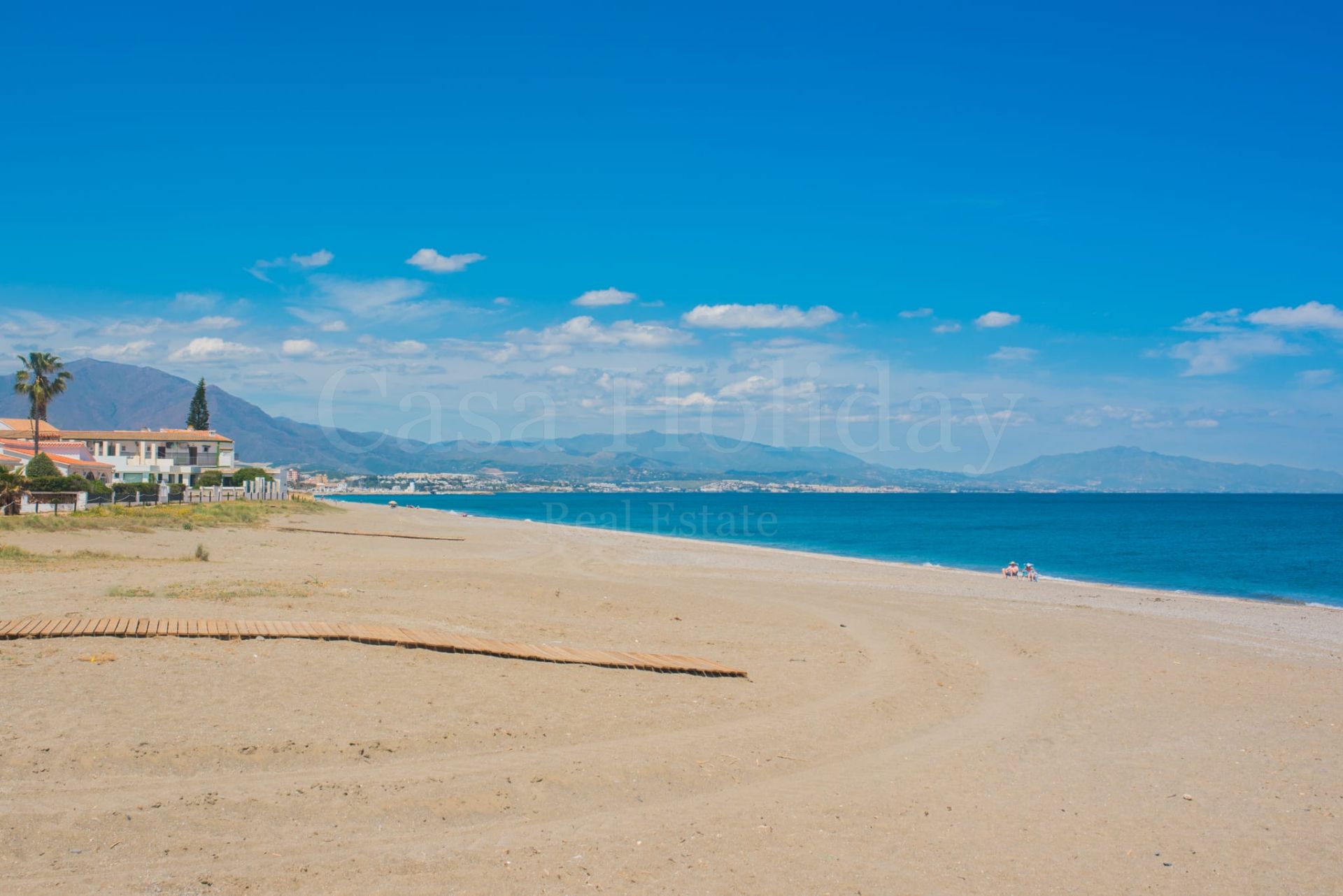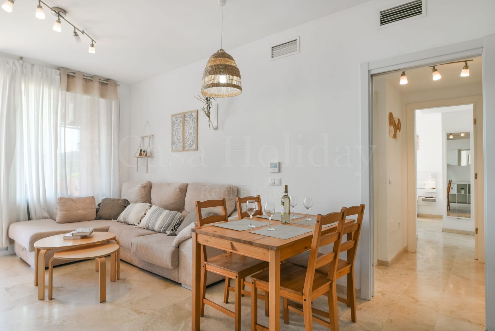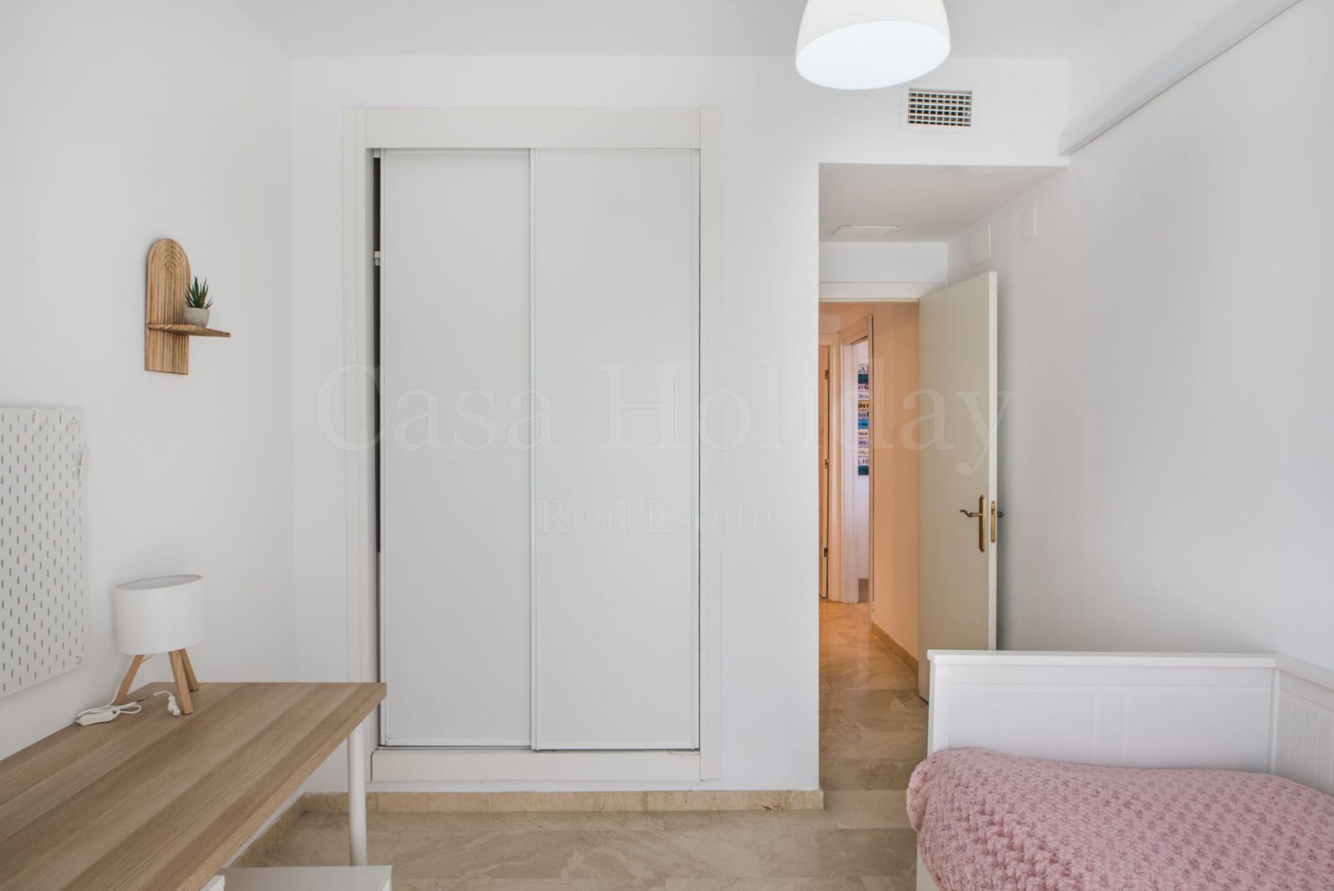Bienvenido a tu refugio costero en Manilva: un apartamento de 3 dormitorios luminoso, elegante y acogedor con vistas al mar y el jardín, ideal para escapadas relajantes o vacaciones junto a la Costa del Sol. Disfruta del equilibrio perfecto entre tranquilidad y cercanía a servicios, playas y lugares de interés. Aquí encontrarás la escapada que tanto buscabas. Tiene aparcamiento privado y la piscina de aire libre en un recinto privado.