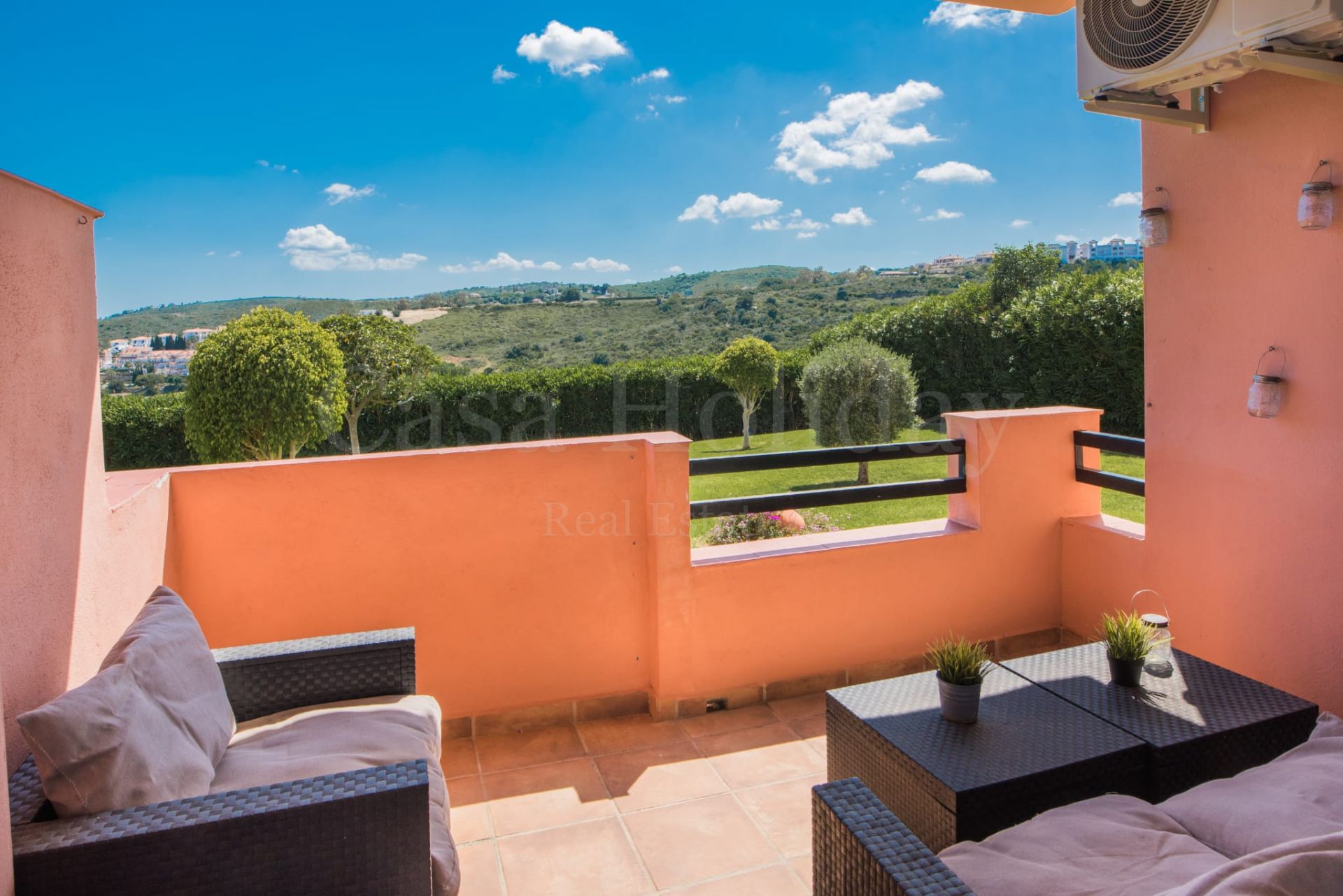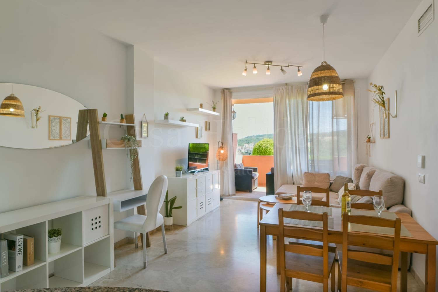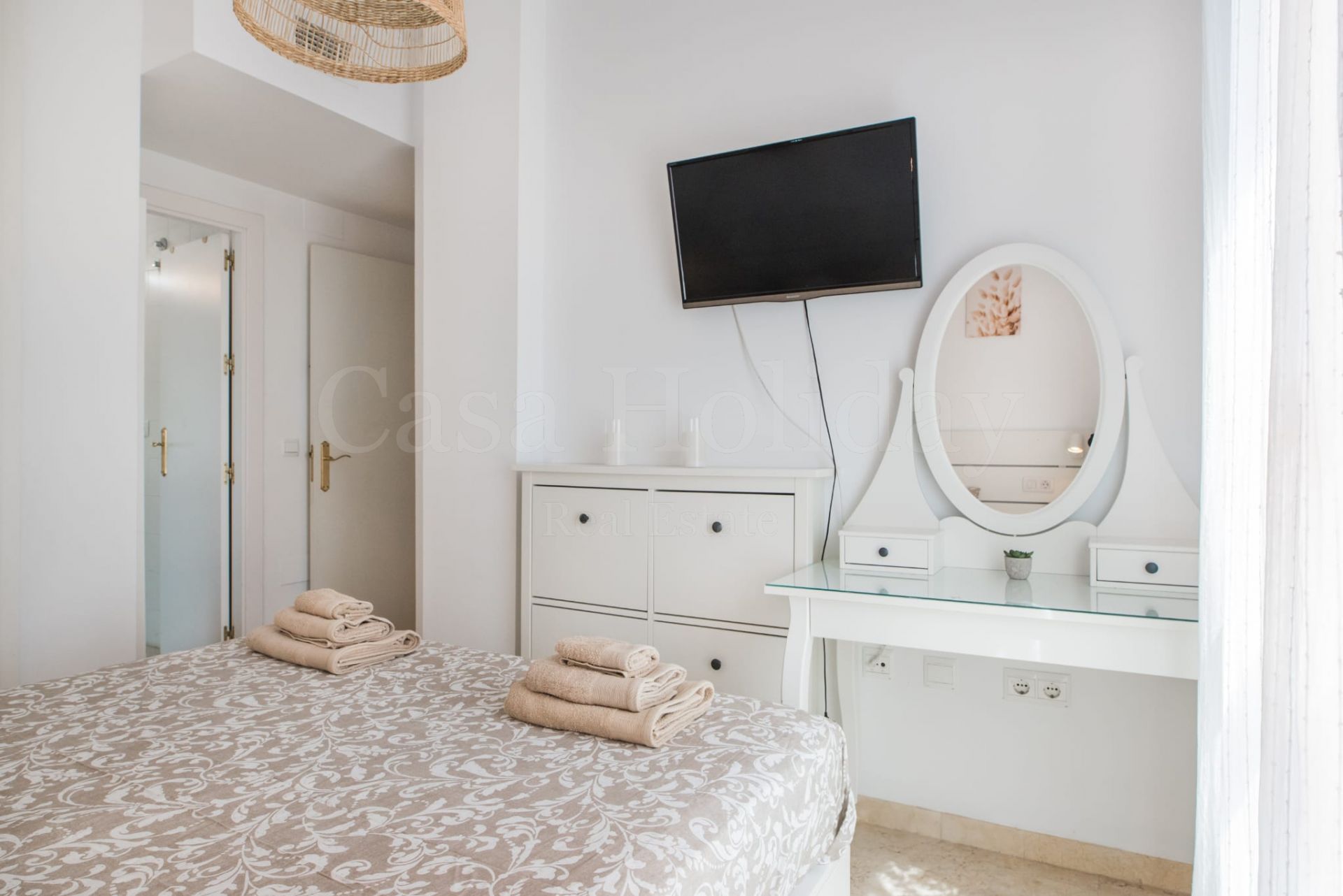 Bienvenido a tu refugio costero en Manilva: un apartamento de 3 dormitorios luminoso, elegante y acogedor con vistas al mar y el jardín, ideal para escapadas relajantes o vacaciones junto a la Costa del Sol. Disfruta del equilibrio perfecto entre tranquilidad y cercanía a servicios, playas y lugares de interés. Aquí encontrarás la escapada que tanto buscabas. Tiene aparcamiento privado y la piscina de aire libre en un recinto privado.