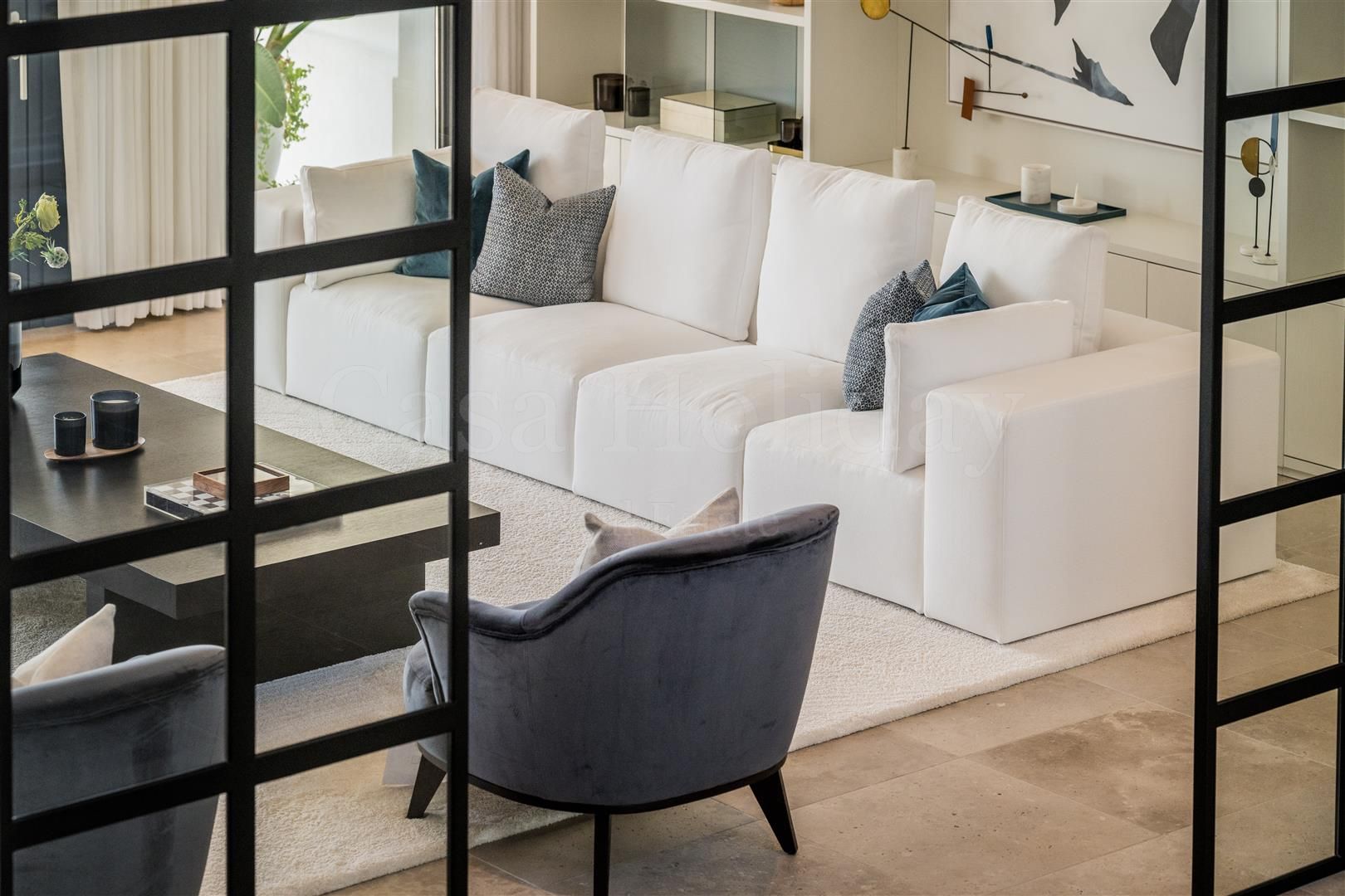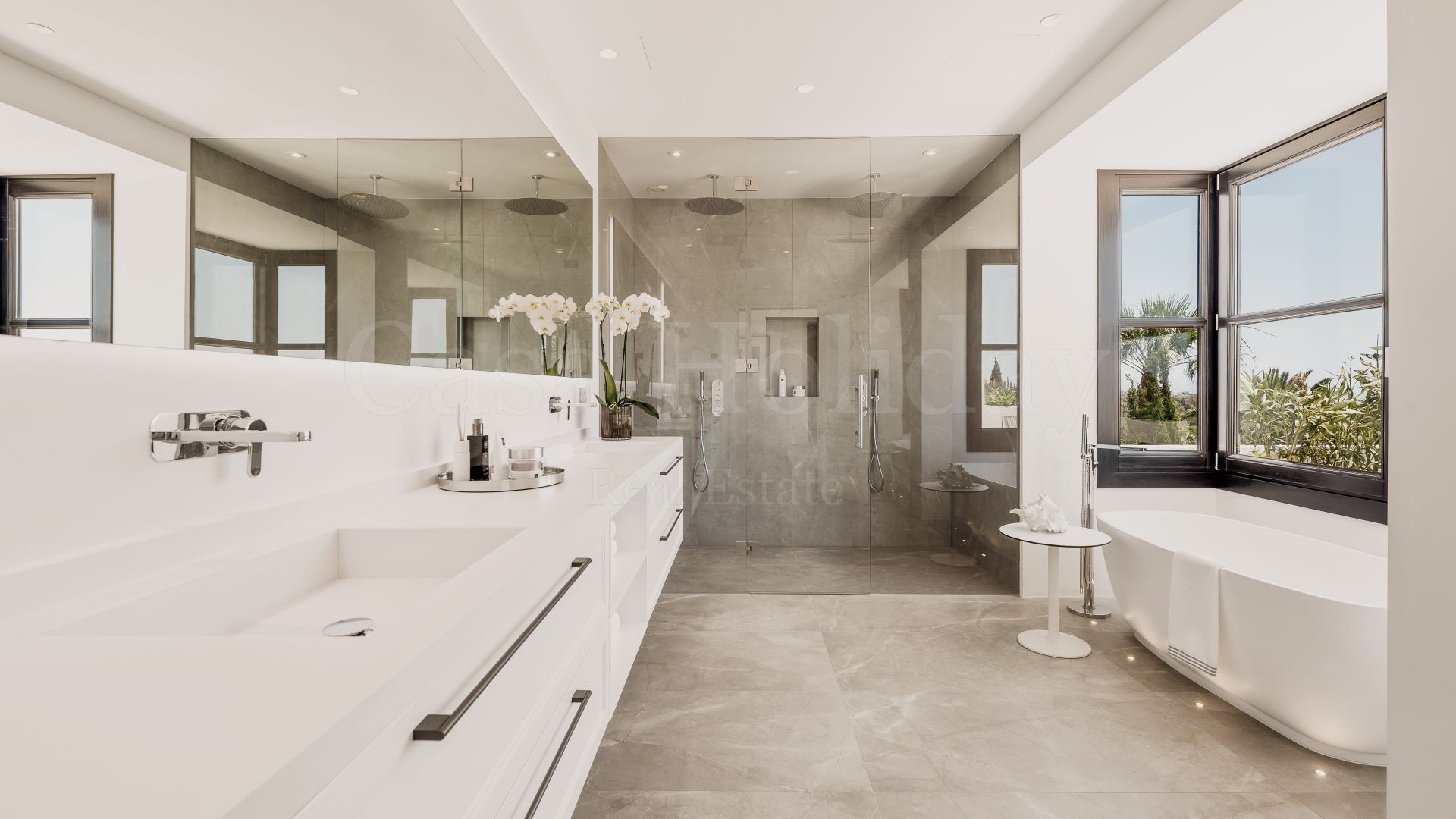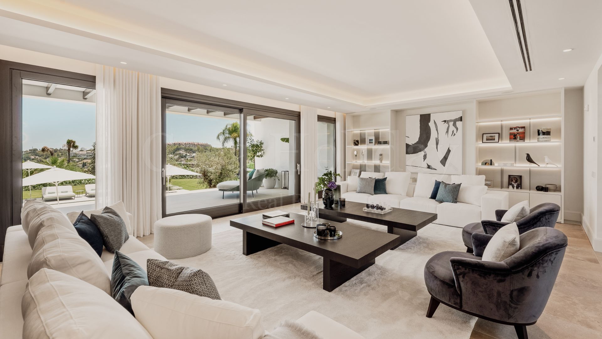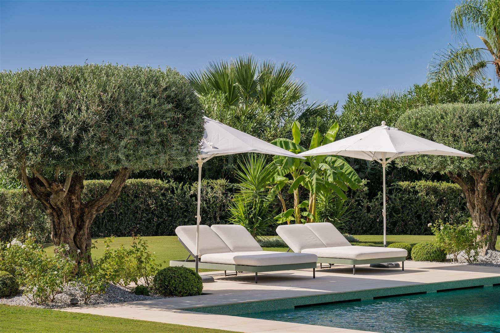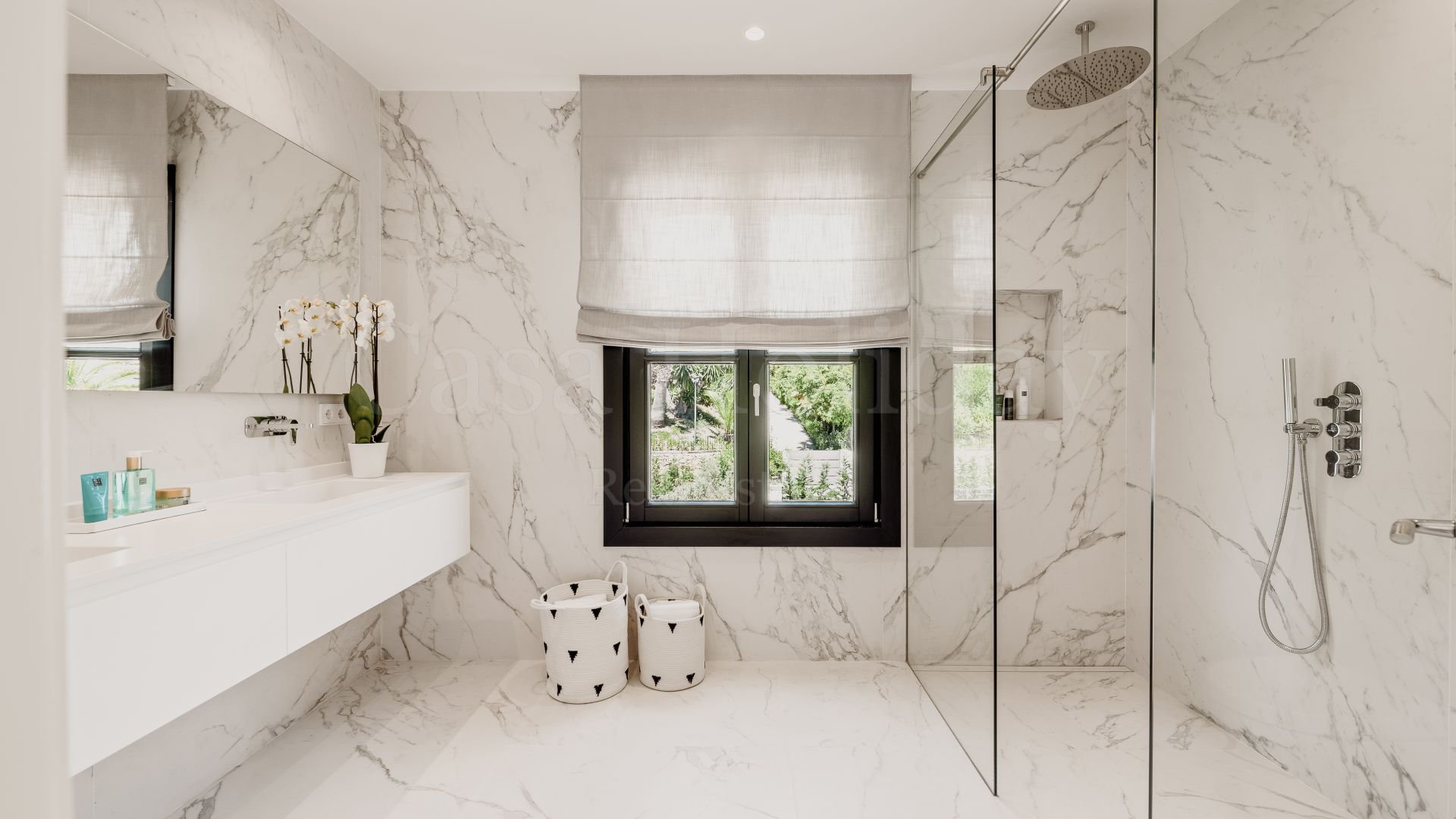 Villa Oliva es una propiedad hermosa y atemporal en venta en la prestigiosa comunidad de La Cerquilla, Nueva Andalucía. Recientemente reformada por completo con altos estándares, esta impresionante propiedad está situada en la calle principal de La Cerquilla. Ofrece vistas panorámicas al valle del golf y al mar. La propiedad tiene más de 1,000m2, distribuidos en 3 niveles, y se encuentra en una parcela de casi 3,000m2, lo que la convierte en una de las villas más grandes disponibles en La Cerquilla. Un impresionante patio de entrada con espacio para varios coches conduce a una entrada espaciosa con un techo de doble altura y vistas impresionantes al mar. El vestíbulo conduce directamente a una amplia sala de estar con fantásticas vistas al mar, un comedor que da al mar y una gran cocina abierta con una sala de televisión / familiar adyacente. Estas habitaciones tienen vistas al mar y conducen directamente a la terraza cubierta principal con una barbacoa incorporada y espacio para comer y descansar al aire libre. También en este nivel hay 3 dormitorios dobles con baños en suite y vestidores privados; uno de los dormitorios de invitados da al jardín, mientras que los otros dos dan al mar con terrazas privadas al aire libre.