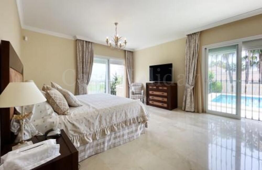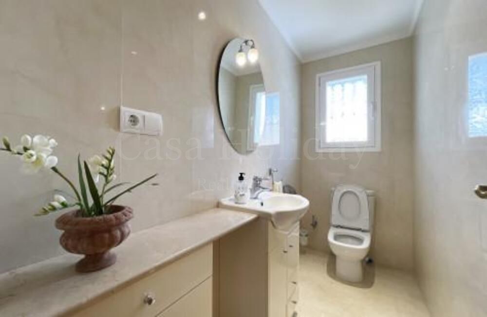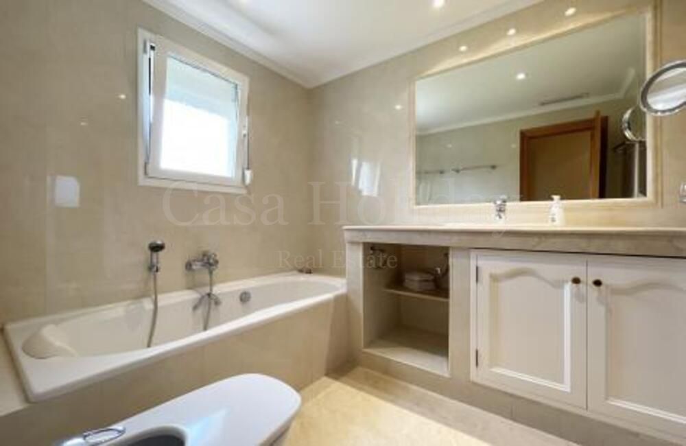 Villa en venta y en alquiler en La Alqueria, Benahavis con 5 dormitorios, 6 baños, 4 baños en suite y con orientación sur, con privada piscina, garaje privado (6 plazas) y privado jardín. Respecto a las dimensiones, la propiedad presenta 800 m² construidos, 1.952 m² de parcela, 650 m² en interior y 150 m² de terraza. Tiene las siguientes características primera linea de golf, servicios cercanos, completamente amueblado, cocina totalmente equipada, trastero, chimenea, sótano, alarma, cristal doble, videoportero, comedor, barbacoa, aseo para invitados, terraza privada, cocina equipada, salón, estudio, vistas al mar, vistas al golf, persianas de seguridad, lavadero, terraza cubierta, armarios empotrados, vistas al jardín, portero, bodega, cerca del golf, terraza descubierta, puertas de cristal, excelente estado, cámaras de vigilancia, oficina, aire acondicionado individual, puerta blindada y cocina office.