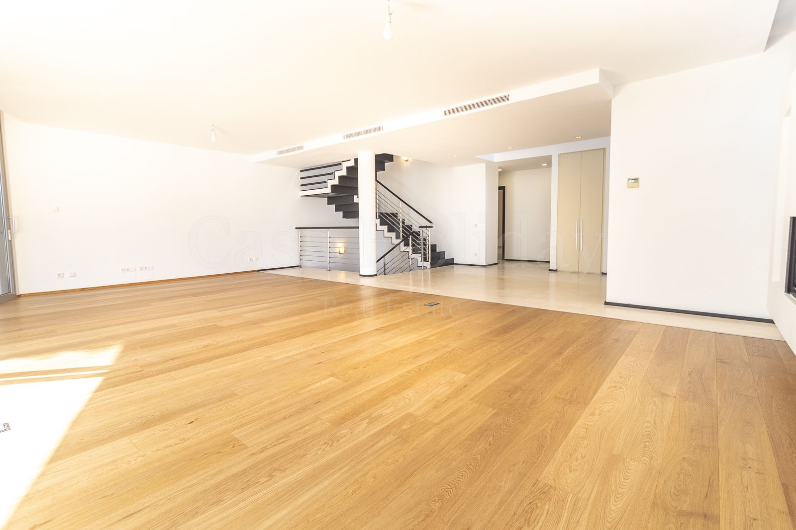 La propiedad dispone de 4 dormitorios en suite más un dormitorio de staff, amplias terrazas y un gran solárium con piscina privada y zonas de estar, conectadas por un ascensor. En el interior destaca la amplitud y luminosidad del salón, la cocina de diseño y los espacios abiertos de estilo contemporáneo y sofisticado.